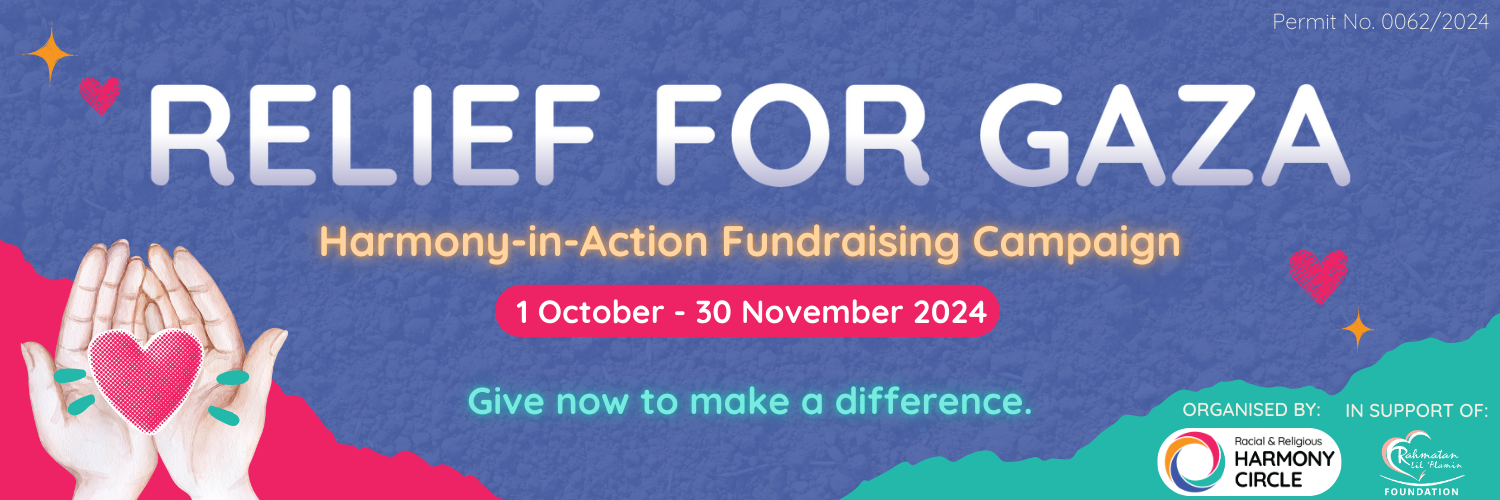 The Racial and Religious Harmony Circle supported the Rahmatan Lil Alamin (Blessings to All) Foundation’s (RLAF) fundraising campaign (Permit No. 0062/2024) to provide critical aid for children and families affected by the ongoing crisis in Gaza.